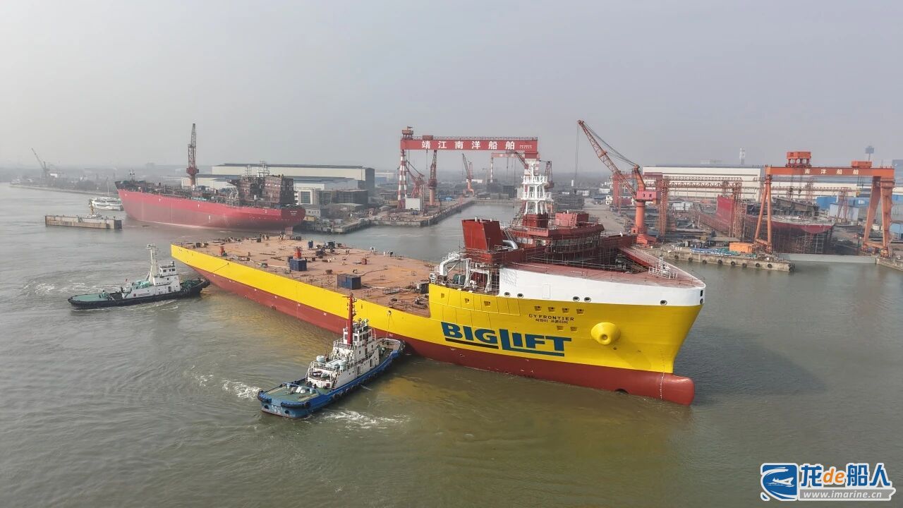 靖江南洋船舶一艘大型甲板运输驳船出坞