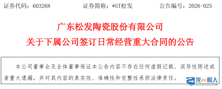 2月24日晚间,恒力重工上市主体*ST松发发布公告称,下属公司恒力造船(大连)有限公司2艘好望角型散货船建造合同于近日签约生效,合同金额合计约1.4亿美元-2亿美元(约合人民币9.67亿-13.82亿)。