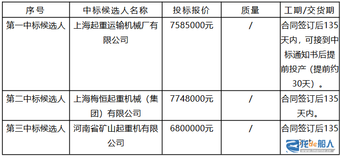 沪东中华造船(集团)有限公司32T门式起重机中标候选人公示