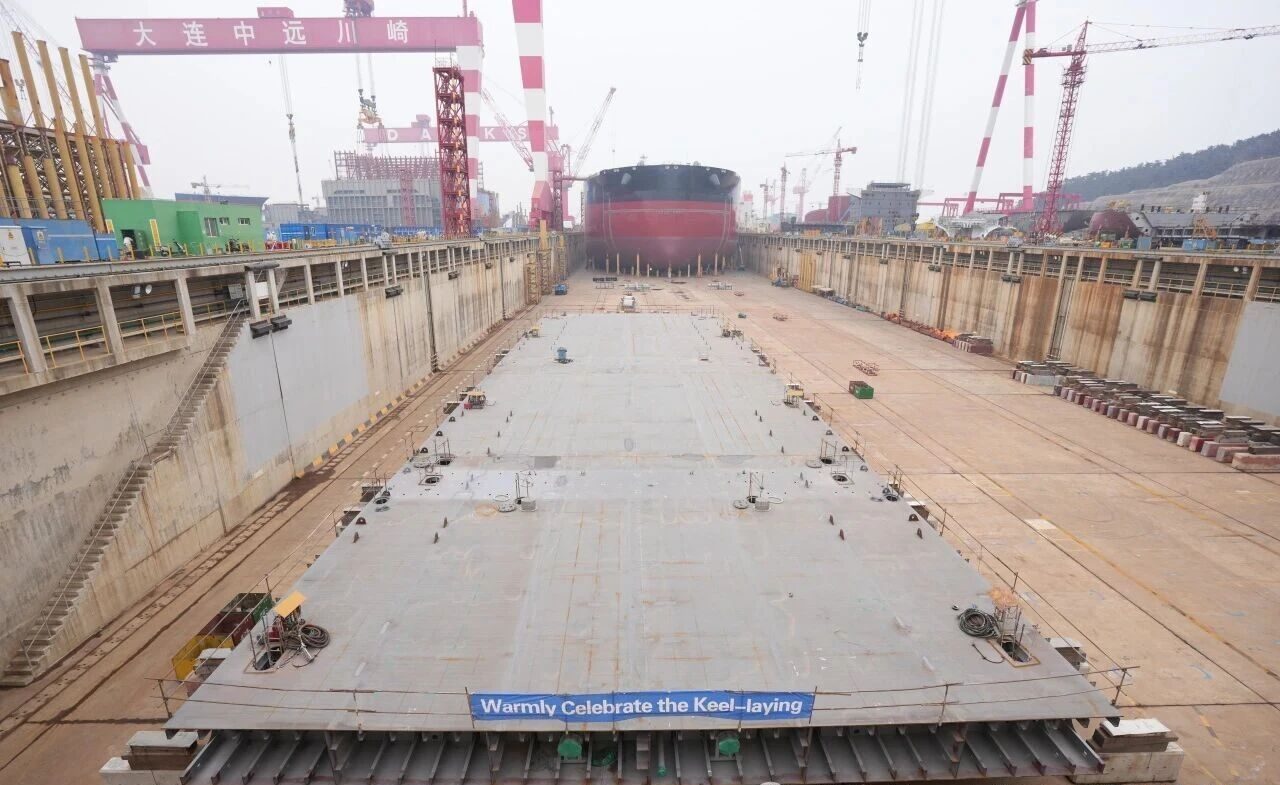 3月5日,大连中远海运川崎(DACKS)为国外某船东量身打造的8.2万载重吨散货船(DE169船)举行铺龙骨仪式。该船首个分段顺利下坞,正式迈入船体搭载核心建造阶段,为后续顺利下水与按期交付打下坚实基础。