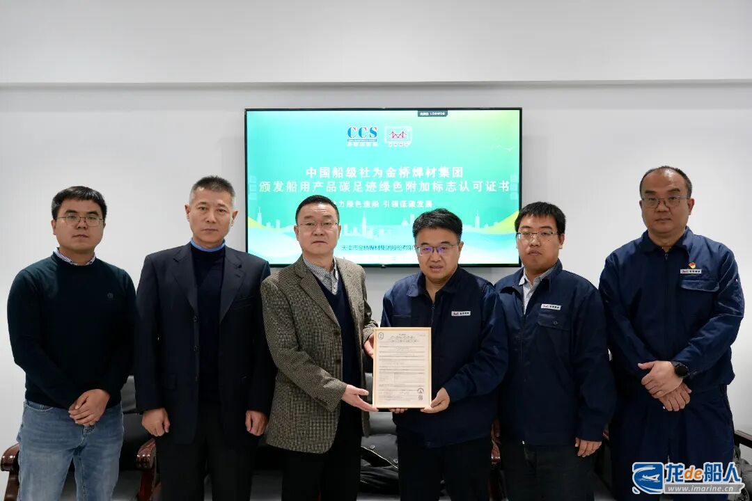 中国船级社官微消息,3月4日,中国船级社(CCS)天津分社为天津市金桥焊材集团股份有限公司(简称“金桥焊材”)颁发了CCS首张焊接材料产品碳足迹绿色附加标志认可证书。