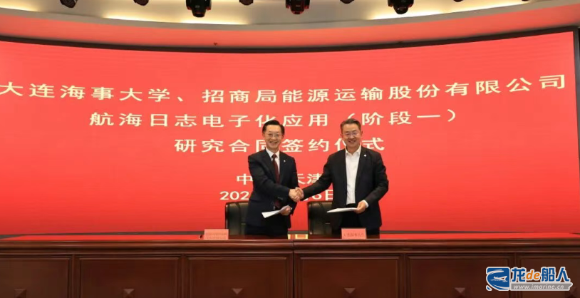 当日,王永新、单红军分别代表招商轮船与大连海事大学签署航海日志电子化应用(阶段一)研究协议。根据协议,招商轮船委托大连海事大学进行航海日志电子化现状及可行性研究,双方将协作进行项目技术论证、监管适配研究、技术标准与格式模板制定等工作,开展电子航海日志技术路径开发应用分析,研究数据存储、传输安全、防篡改等核心技术。