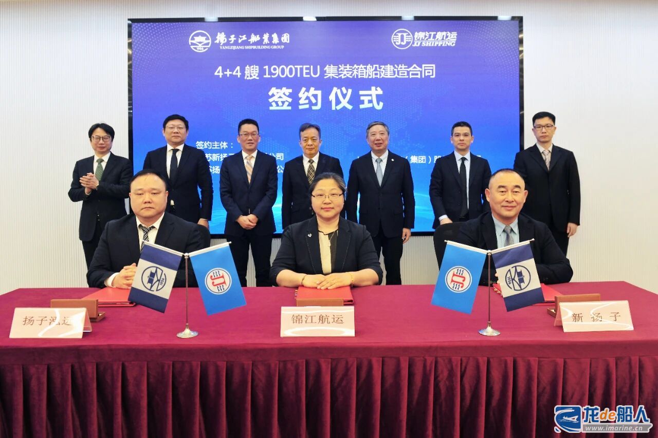 3月10日,锦江航运与江苏新扬子造船有限公司在江苏泰州举行4+4艘1900TEU集装箱船建造合同签约仪式,标志着锦江航运运力基本盘优化升级迈出关键一步。