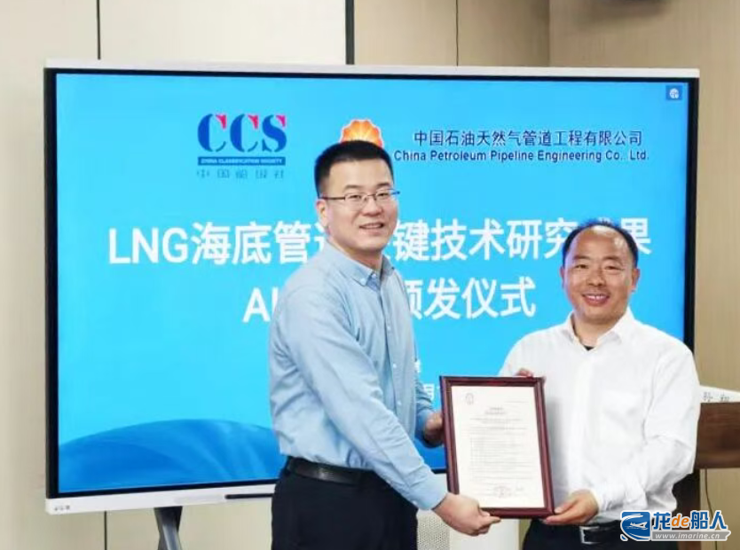 近日,中国船级社(CCS)在新型海底管道服务能力建设方面取得新成果,CCS海洋工程技术中心为中国石油天然气管道工程有限公司颁发国内首张LNG管道AIP证书,服务保障我国海工行业在LNG安全高效输送技术领域开辟新路径。