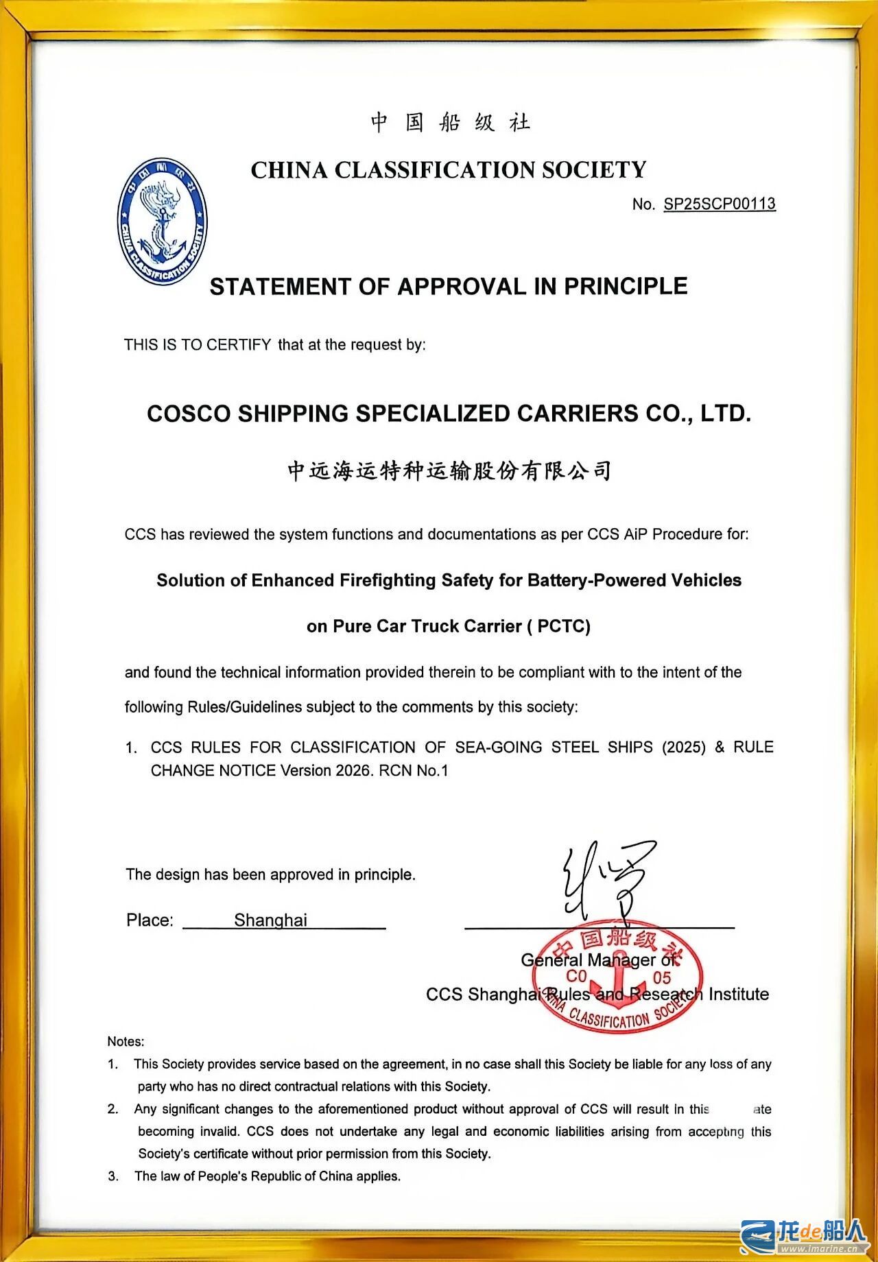 这一成果不仅标志着中远海运集团汽车船队在新能源汽车海运安全标准化领域实现重大突破,更让中国方案助力全球新能源汽车“扬帆出海”更安全。