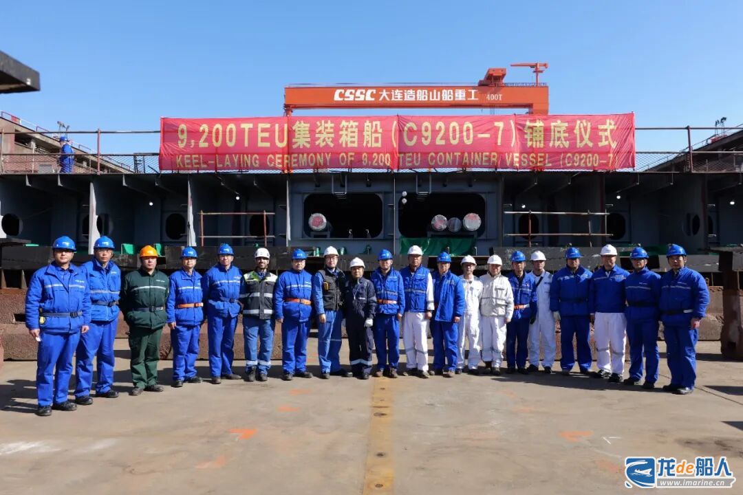 3月20日上午,中船大连造船山船重工5号坞举行C9200TEU集装箱船(C9200-7)铺底仪式。该船是为希腊Danaos Corporation建造的5艘系列船中的首制船,也是山船重工迄今承建的最大集装箱船。