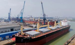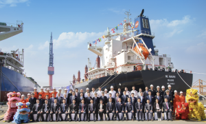 3月27日,大连中远海运重工为中远海运能源建造的首制64900载重吨巴拿马型原油运输船”驭能鲲鹏“顺利命名交付。该项目是大连中远海运重工继49900载重吨成品/原油轮之后,与中远海运能源在造船领域再度携手合作推出的又一绿色智能型船舶。