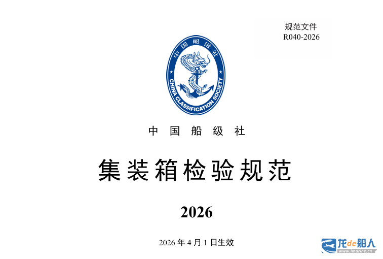 《集装箱检验规范》(2026)于2026年4月1日起生效。