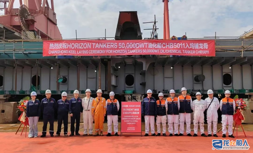 3月30日,舟山长宏国际为希腊船东HORIZON TANKERS公司建造的5万吨MR型系列油化船第四艘船(船体号CHB5011)在2#坞内顺利实现入坞铺龙骨,标志着该船正式进入搭载合拢阶段。