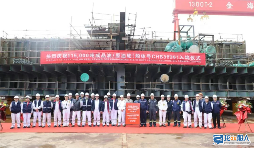 同日,舟山长宏国际为希腊Polembros Shipping公司建造的11.5万吨油轮(CHB3025)在舟山长宏(岱山基地)一号坞顺利入坞铺龙骨,正式开启坞内搭载新阶段。