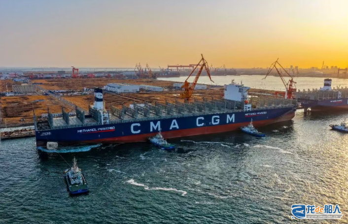 4月1日,中船大连造船大船天津为达飞集团建造的甲醇双燃料集装箱船C16K-17号船圆满完成甲醇燃料试航任务,顺利停靠码头。