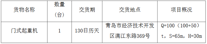 本招标项目门式起重机招标人为中国船舶集团青岛北海造船有限公司,招标项目资金来自自筹,该项目已具备招标条件,现对门式起重机采购展开招标。