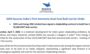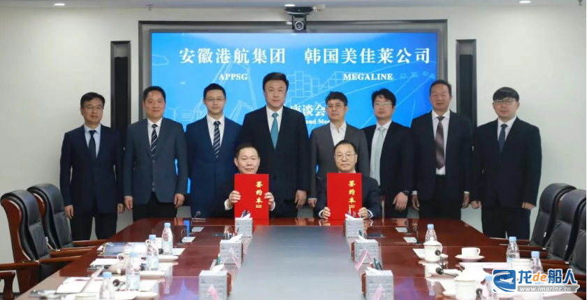 近日,安徽港航陆海装备有限公司枞阳船厂与韩国Megaline(美佳莱)公司在合肥举行25000载重吨重型货船建造项目签约仪式。