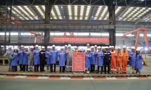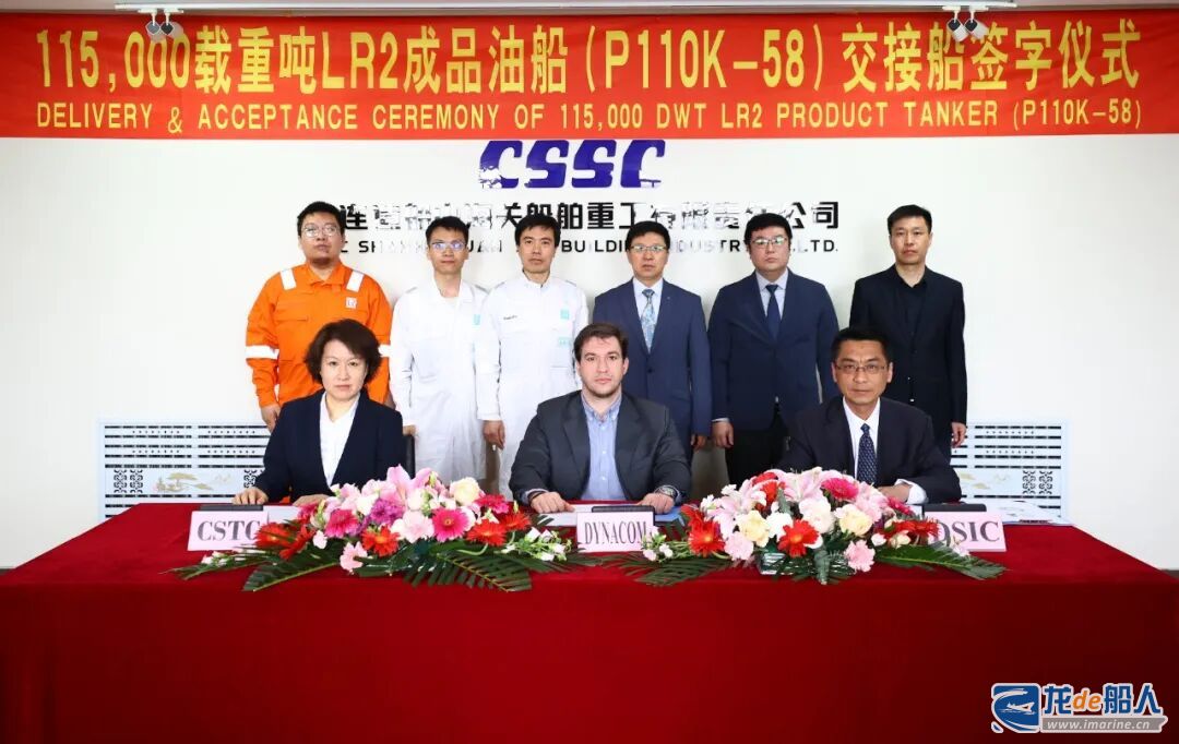 4月17日,中船大连造船山船重工为希腊船东Dynacom建造的11.5万吨LR2型成品油轮“锡米”号,顺利签字交付。