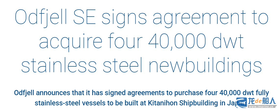 4月22日,挪威化学品船船东/运营商Odfjell通过官网宣布,该公司已签订协议,将收购4艘在建40000载重吨不锈钢化学品船。该批新船由北日本造船(Kitanihon Shipbuilding)建造,预计将于2027年第一季度至2029年第二季度期间交付,建成后将从一家日本船东处购入。
