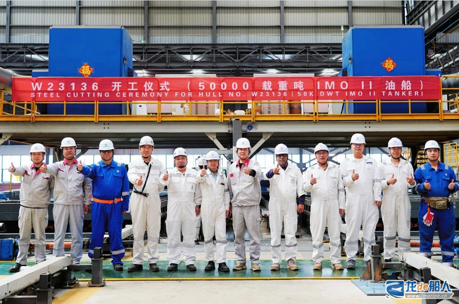 4月22日,芜湖造船厂威海基地建造的50000载重吨IMO II型成品油/化学品船(W23136)顺利举行开工仪式。