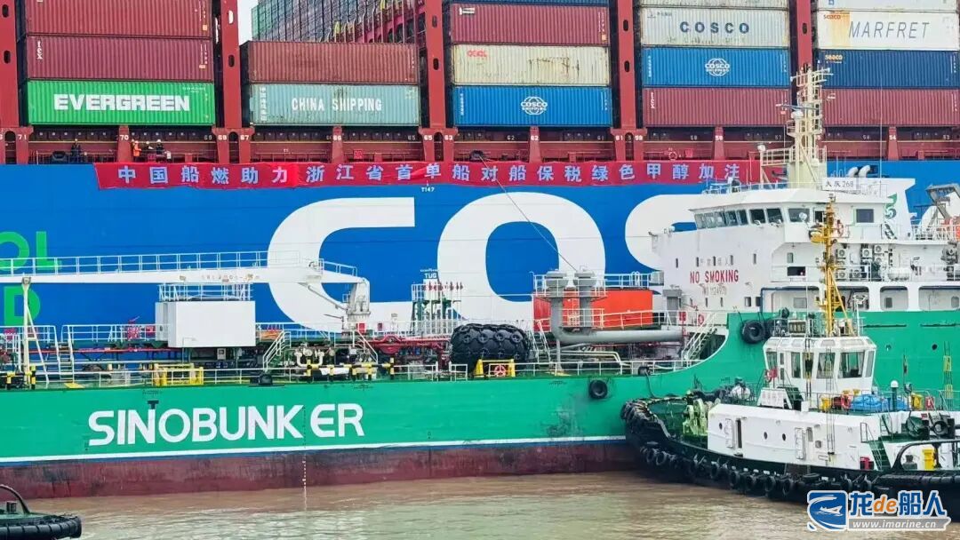 这是中国船燃在宁波港首次、更是浙江省内首次采用“船对船”模式开展绿色甲醇加注作业。