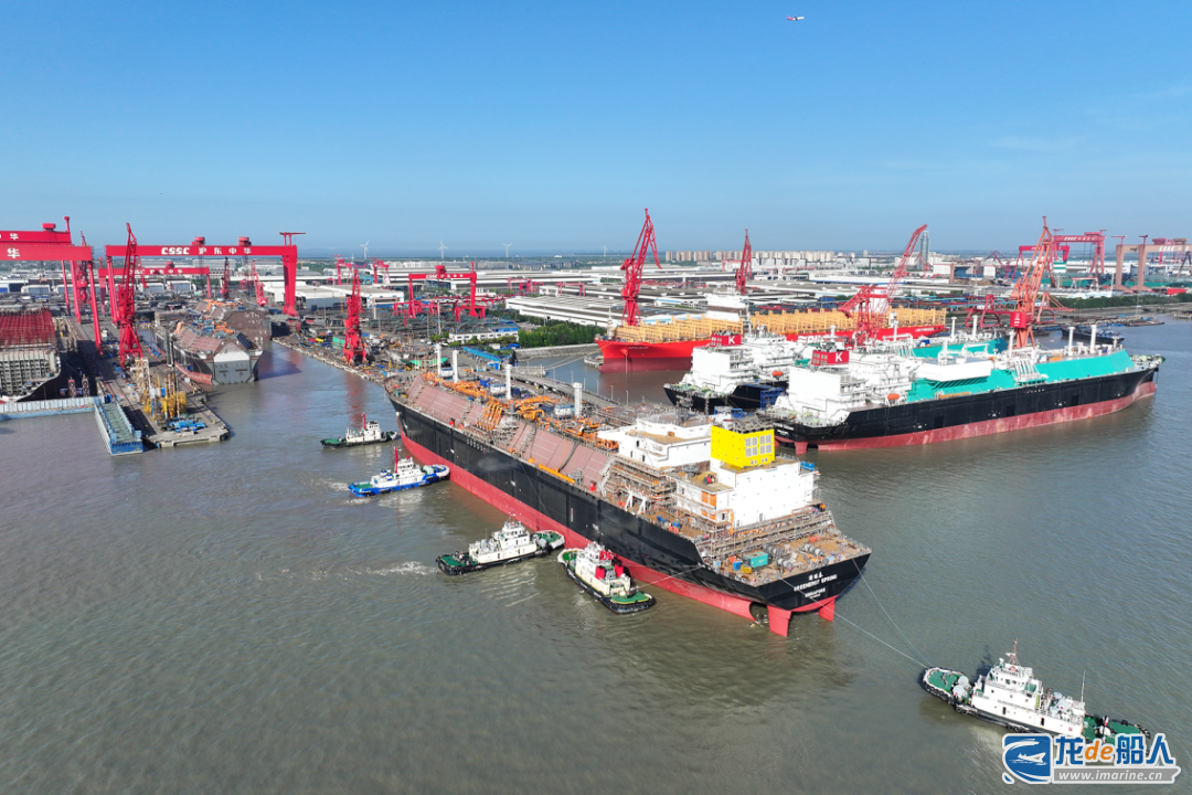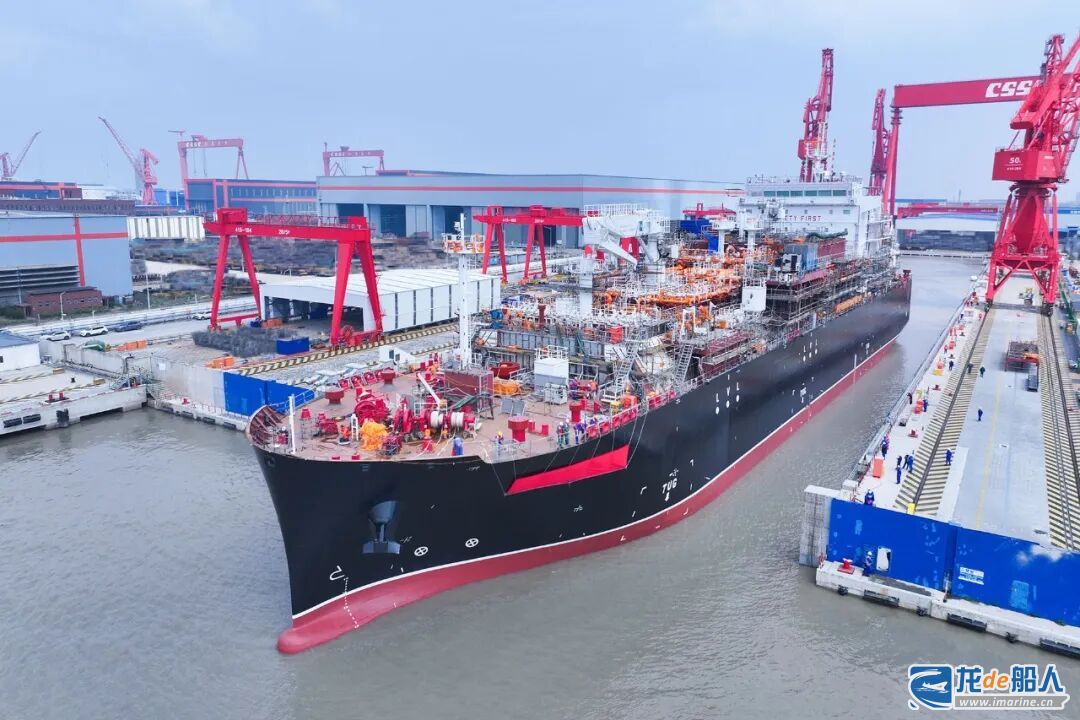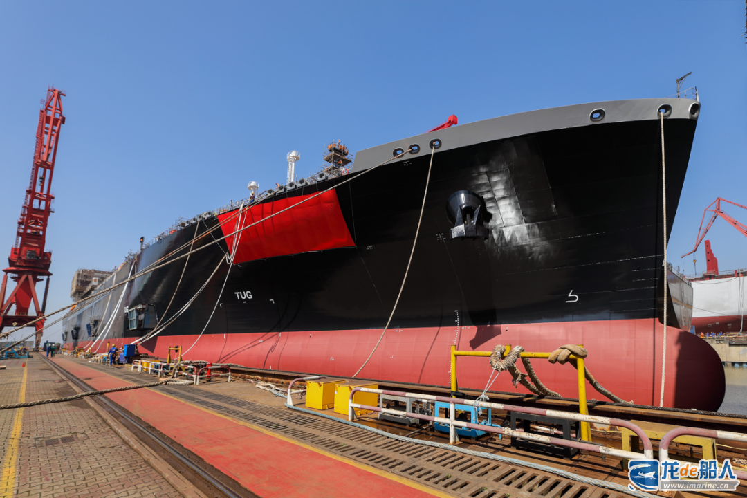 3月31日,沪东中华为法国道达尔能源公司建造的18600立方米LNG加注船首船(H1930A)在新厂区一号船坞出坞。