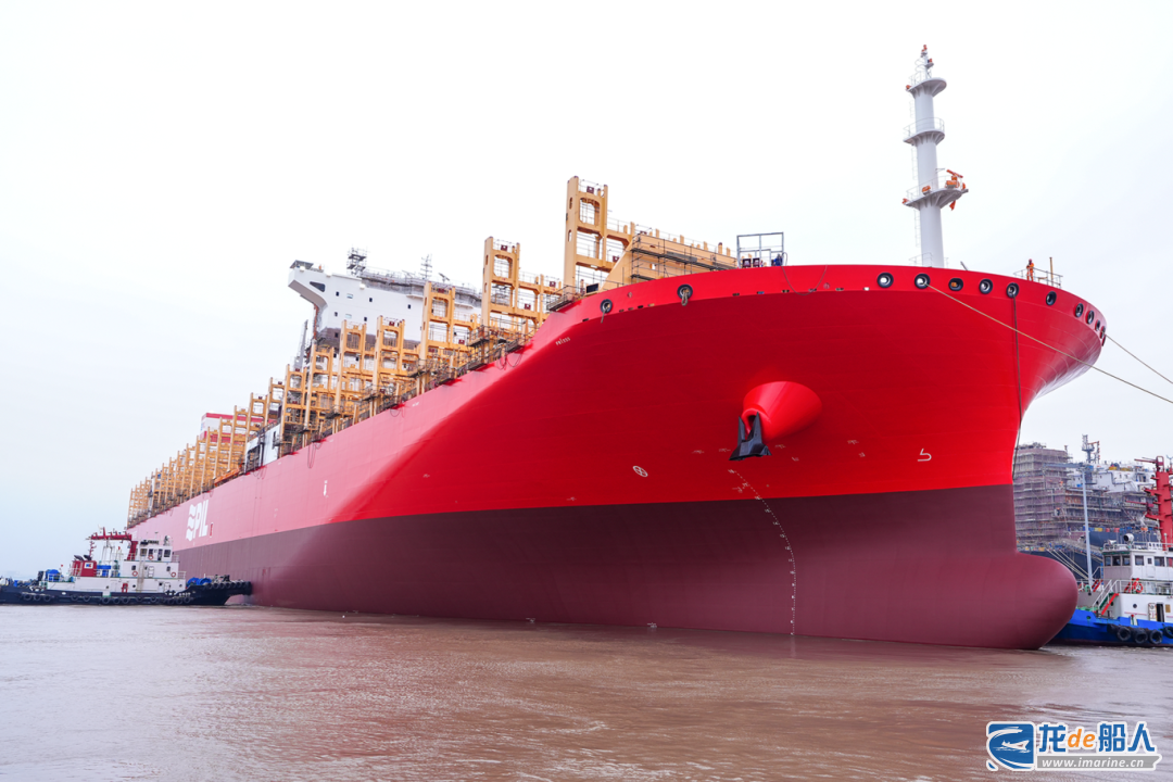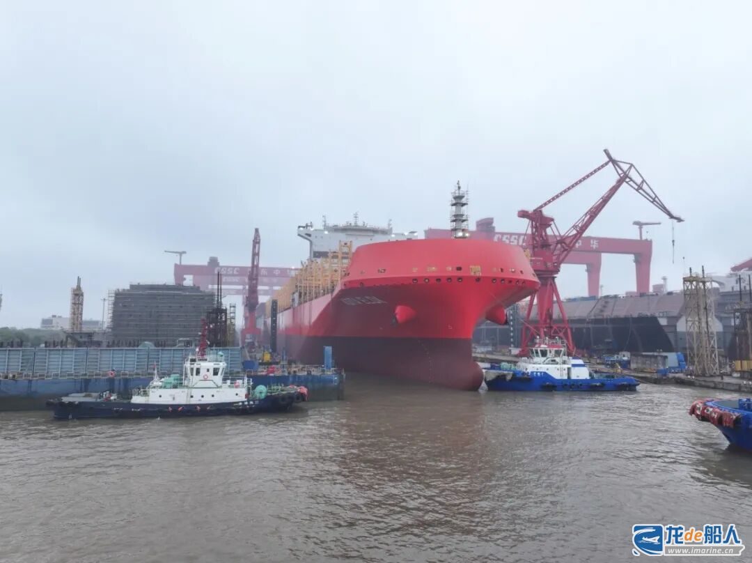 4月20日,沪东中华为新加坡太平船务(PIL)建造的 13000TEU 双燃料集装箱船( H1934A )在新厂区 W2 船坞出坞。
