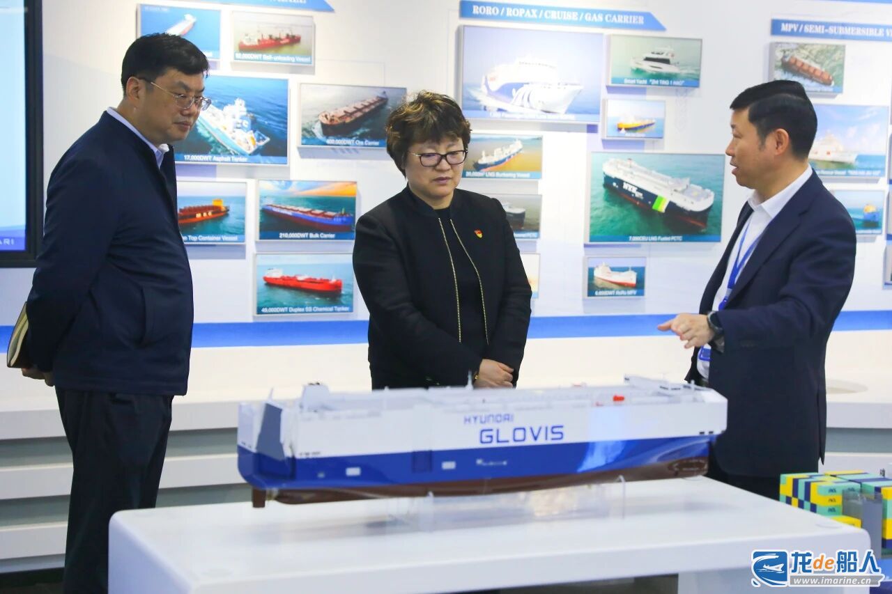 在展厅,吕智勇向张淑艳一行介绍了船舶行业概况、院科技创新成果和参与张江区域联建共建情况。