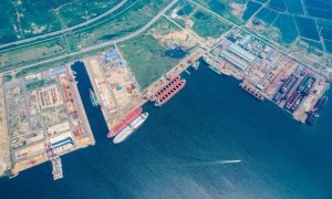 12月23日下午,扬州中远海运重工首制40万吨超大型矿砂船VLOC(船体号:H1442)开始试航,这是继12月22日首艘15.8万吨原油轮(CIS158K-01)完成试航、3号坞在建的13500TEU集装箱船(H3031)以及2号坞在建的VLOC(H1443)全船贯通后,两天之内实现的第4个生产大节点。