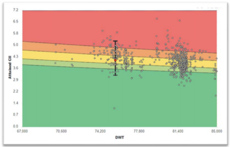 通过对IMO-DCS和EU-MRV数据的分析,用户可以通过“船型/大小”和“船龄”来比较一艘船与其他类似船的CII评级,使他们能够在CII评级方面掌握船舶的竞争优势,并考虑采取行动的必要性。