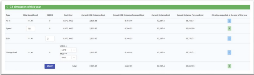 用户可以模拟一艘船在改变航速或其他参数的情况下,它的年度CII评级将如何变化。这将有助于为船舶制定操作计划,以达到目标CII评级。