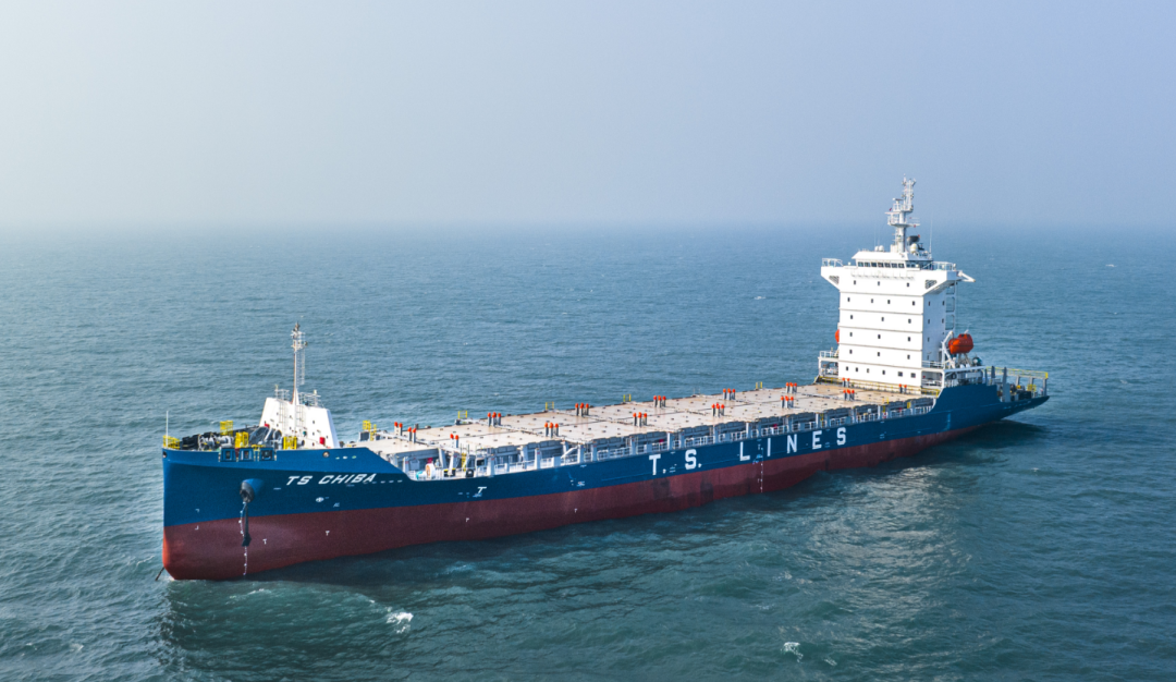 该船总长147.90米,型宽23.25米,型深11.50米,设计吃水7.30米,服务航速19.0节。本船为远洋航行、单作用柴油机驱动集装箱船,适用于装干货集装箱和冷箱,入级日本船级社。该船是公司为TS LINES(台湾德翔)建造的第二艘1100TEU集装箱船,具有良好的燃油经济性和低燃油消耗率,主机和发电机满足Tier Ⅱ排放要求。