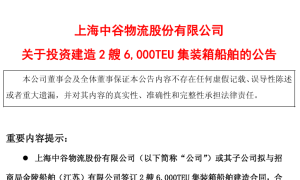 2月4日晚间,上海中谷物流股份有限公司(中谷物流)发布《关于投资建造 2 艘 6,000TEU 集装箱船舶的公告》。 公告披露,中谷物流或其...