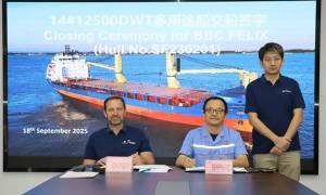 9月18日,三福船舶为德国船东建造的一艘12500DWT多用途船举行了签字交船仪式。 该船总长147.00米,型宽22.80米,型深11.5...