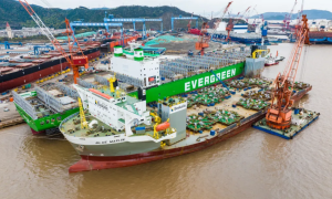 4月16日, 由常石造船(舟山)建造的首艘甲醇双燃料5900TEU集装箱船,在常石舟山秀山工厂内正式起工(铺龙骨)。 据了解,该艘5900T...