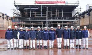 2月12日,招商工业威海金陵举行为华科五洲建造的第七座自升自航式生活平台(W6036项目)铺底仪式。 为充分利用船坞资源,加快工序推进,提升...