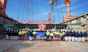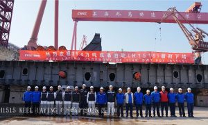 2月12日,招商工业威海金陵建造的第15艘高端客滚船(W0283)举行铺底仪式。 该船总长202.9米,型宽27.8米,设计吃水6.5米,能...