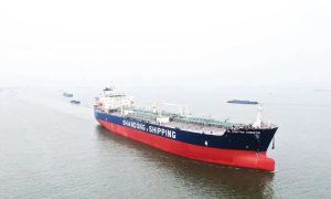 4月24日,由中国船级社(CCS)检验,江苏新时代造船有限公司为国银租赁建造的10艘5万吨MR型化学品油船系列船的第3艘“CL AGATHA...