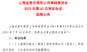 7月14日,上海证券交易所发布《上海证券交易所上市审核委员会2023年第63次审议会议结果公告》,审议结果为:上海锦江航运(集团)股份有限公...