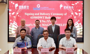 7月18日,象屿海装为希腊Goldenport公司建造的63500DWT散货船(XY104)签字交付。 63500DWT散货船总长199.9...