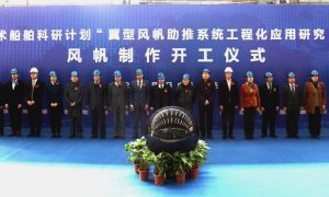 3月9日,国家高技术船舶科研计划——“翼型风帆助推系统工程化应用研究”(风帆二期)项目风帆制作开工仪式在中国船舶大船集团举行。 效果图 “翼...