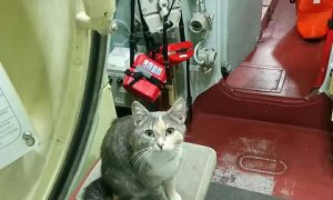 近日,1家俄罗斯图片网站发布了1组被蓄养在核潜艇上的猫的图片。图为这只猫被拍到站立在核潜艇战斗舱室的便椅上。 在舰艇上蓄养猫是很多国家海军的...