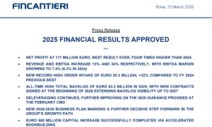 全球最大造船集团之一意大利芬坎蒂尼(Fincantieri)正式披露《2025年财务业绩》,报告期内的新接订单价值和净利润均创下历史新高,意...