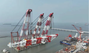 南通海事消息,2月3日,江苏大津重工有限公司南通基地码头,全球最高打桩架在“亚龙518”轮、“亚龙618”轮、“亚龙66”轮三艘大浮吊和警戒...