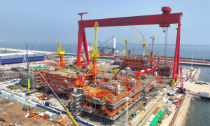 近日,海洋石油工程股份有限公司承建的壳牌尼日利亚HI项目上部组块在天津智能制造基地码头完工交付。该项目建造历时仅12个月,刷新了国际海洋油气...