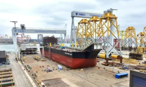 近日,中船武汉船机自主设计建造的JANA 510海上自升式作业支持平台在青岛海西重机码头完成下水站桩的关键建造节点,这标志着该平台的主体结构...