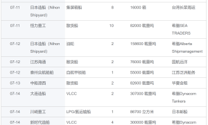 据龙船订单库(https://www.imarine.cn/order)跟踪统计,上周(7.10-7.16)公布的新船订单有52+4艘。