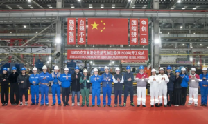 3月3日,沪东中华造船为法国道达尔能源公司建造的18600立方米LNG加注船1号船(H1930A)在新厂区制造一部联合车间举行开工仪式。 沪...
