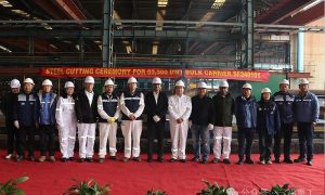 3月4日,三福船舶为泰国船东建造的63500DWT散货船系列中的首制船SF240101举行开工仪式。 该船总长199.90米,垂线间长196...
