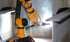 在韩华海洋巨济造船厂,一台重达17公斤的移动焊接机器人Rondi正在船体组装车间持续作业,现场工人则专注于监督机器运行。 韩华海洋智能生产推...