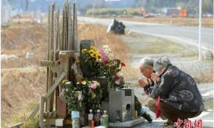 资料图:当地时间3月11日,是日本3.11大海啸四周年纪念日,日本各地民众为四年前在海啸中遇难的亲友祈祷和哀悼。2011年3月11日,日本发...