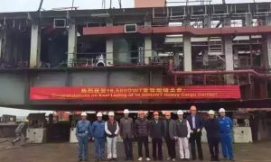 2015年12月11日,浙江增洲造船有限公司为韩国船东建造的一艘18500DWT重载船(HULL No.: ZZ066)铺龙骨仪式顺利进行,...