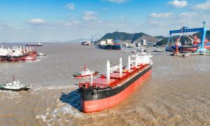 12月25日,舟山中远海运重工有限公司为招银金融租赁有限公司/香港舟山一海海运有限公司建造的6.36万吨散货船首制项目N1140试航凯旋。 ...