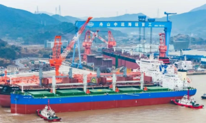 1月18日,扬子江船业集团扬子三井造船为新加坡船东建造的第三艘新一代66000DWT超灵便型散货船“UBON NAREE”轮解缆离开船厂码头...